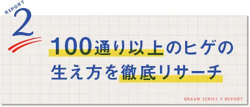 実に、世界各地の500人にのぼる消費者に対し、150種類ものシェービングテストが行われた。ドイツをはじめとするヨーロッパ、中東、アジアなど、消費者の国籍も多岐にわたった。あらゆる人種のどんな凹凸にも対応できるようテストした結果、ヒゲの生え方には100以上もの種類があることがわかった。
