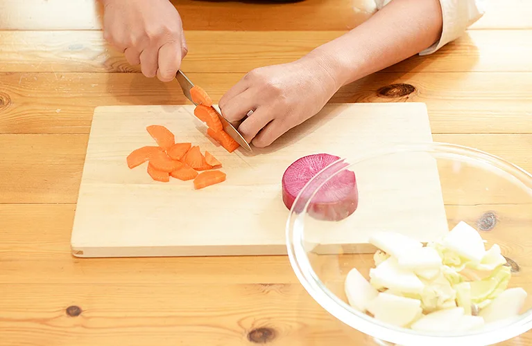 お好みの野菜を切って揉むだけ。簡単に自分好みのべったら漬けができます。