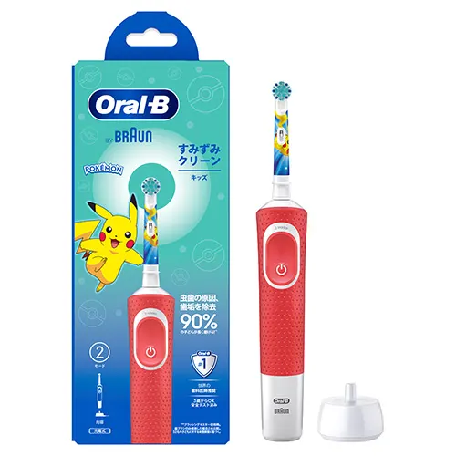 ブラウンオーラルB 電動歯ブラシ「すみずみクリーンキッズ」。丸型ブラシで徹底した歯垢除去を実現します。