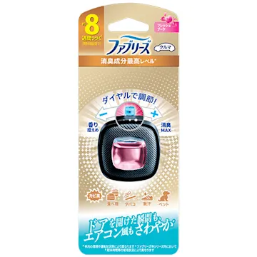 新調整ダイヤルで香りも消臭力も自由に調節。従来の約1.5倍、約8週間つづく(開封時設定で)。車用ファブリーズ史上消臭成分最高レベル配合。ペット、タバコ、食べ物のニオイにも!座席、天井まで消臭&防臭!