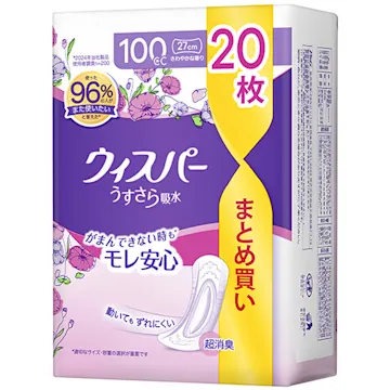 ・超吸収、超快適、超消臭。・ぎっしり詰まった「強力吸収体」だから、しっかり吸収。・ギャザーが高くなった、ぴったりフィット横モレ防止デザインで、横モレを防止。吸収エリア幅広設計*当社従来品比較。・スピード吸収、超スピード消臭技術。いやなにおいを中和する技術で、吸水後のにおいもすぐに消臭。
