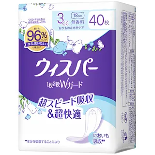 ウィスパー 1枚2役Wガード 3cc おりもの&水分ケア 無香料