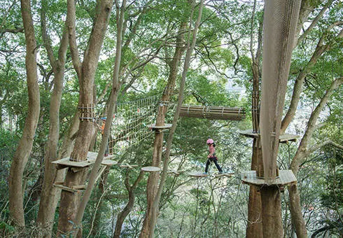 「星野リゾート リゾナーレ 熱海」に隣接する敷地内に、ツリーハウスや樹上アスレチックなどを有した森。