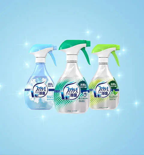 ファブリーズは水をベースに、「トウモロコシ生まれの消臭成分」、化粧品や薬用石けんに使われているものと同じタイプ「有機系の除菌成分」、野菜や果物に含まれる酸と同じ成分が配合されています。