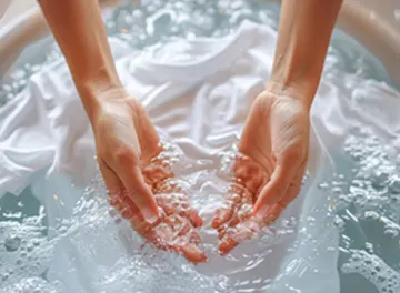 通常の洗濯では、お湯を使うと洗浄効果が高まりますが、たんぱく質はお湯で固まる性質があるので、かえって シミを進行させてしまいます。30℃の目安は自分の体温より低く感じる程度です。